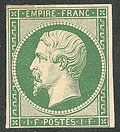 ESSAIS. (*) Empire. 1f vert, recto-verso, tangent au filet en bas, TB d'aspect (cote Yvert) |