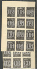 ESSAIS. (*) Projets privés. Essai de l'imprimerie Nationale. Taxe 10c et 15c noir, en bloc de douze ex cdf. - TB (cote SM) |