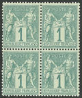 SAGE. (*) Granet. Nos 83f, 85d, 87e, 88d, 96e, tous en bloc de quatre bdf. - TB (cote Yvert) |