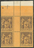 SAGE. ** No 74, bloc de quatre bdf, superbe (cote Yvert) |