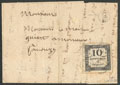 "TAXE. Lettre. Lithographie. No 1, obl OR" (4 frappes) sur lettre avec texte et boite "B". - TB. - R (cote Cérès 2008) "" |