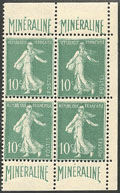XXe SIECLE. ** Mouchon. No 114, bloc de quatre (2 ex * dont un pli). - TB (cote Yvert) |