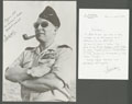 AVIATEURS. Lettre. Général CHALLE (Gal d'armée aérienne). Photo 30x21cm annotée et dédicacée + courrier manuscrit correspondant. - TB. - R |