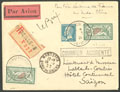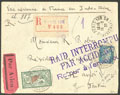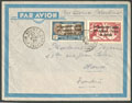 "LIGNE NOGUES. Lettre. Accidenté France-Indochine. Enveloppe recommandée afft 181 + 207(2), obl 18.2.29, pour Saïgon, avec griffe noire encadrée et signature Le Brix", arr. 9.3.29. - TB""