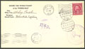 "VOLS ETRANGERS. Lettre. Etats-Unis. Record du Monde de vol autour du Monde en 8 jours", 15h et 21' par W. Post et H. Gatty, 21 juin 1931. Enveloppe spéciale "Winnie Mae" afft N°229, transit Berlin et marques russes, arr. Mineola 1 juil 31 et signatures des pilotes, jointes 12 photos de presse, superbe (10 plis)"" |
